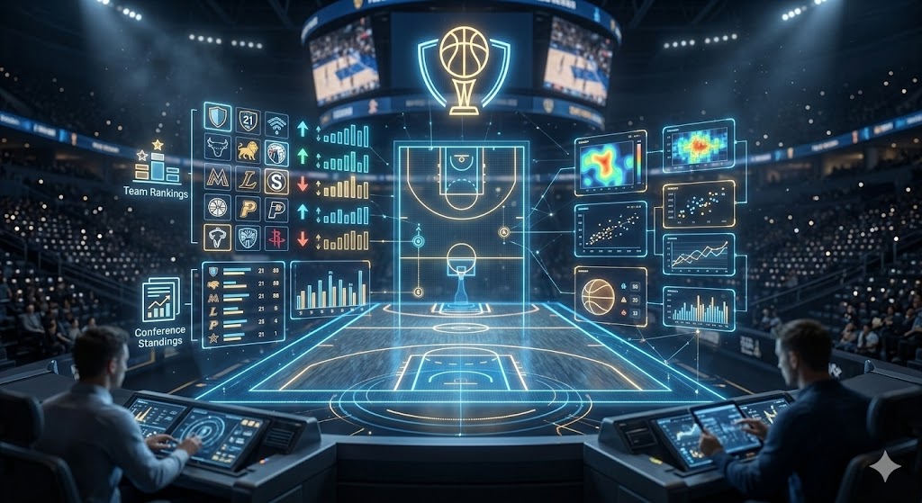 Moderni koripallo hyödyntää analytiikkaa ennustamaan sarjataulukon lopullista muotoa jo kuukausia ennen kauden päättymistä. ”Strength of Schedule” (otteluohjelman vaikeus) on yksi tärkeimmistä mittareista; jos joukkueella on jäljellä paljon kotipelejä heikkoja vastustajia vastaan, heidän odotetaan nousevan taulukossa. Myös ”Net Rating” (tehtyjen ja päästettyjen pisteiden suhde 100 hyökkäystä kohden) on usein tarkempi joukkueen todellisen tason mittari kuin pelkkä voittotilasto, ja se ennustaa usein tulevia voittoputkia.